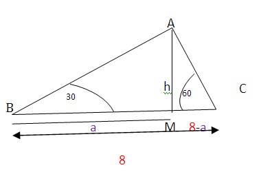 tan 60 = h/(8 - a)