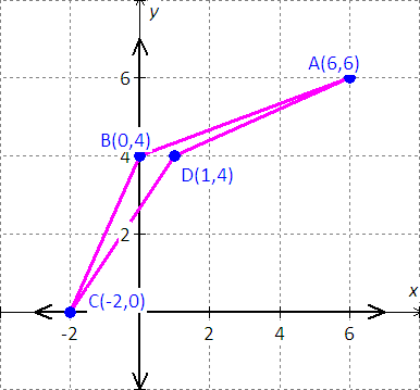 A(6, 6), B(0, 4), C(–2, 0), D(1, 4), show that the quadrilateral?