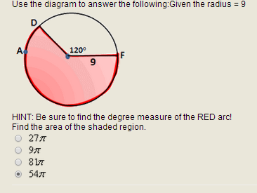 A = π(9)2 * [240o / 360o]