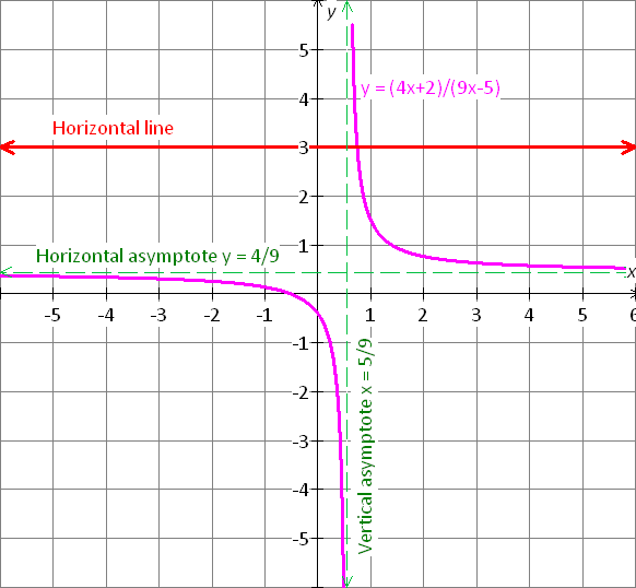 If the degree of the numerator is equal to the degree of the denominator, then horizontal asymptote y = ratio of leading coefficients.