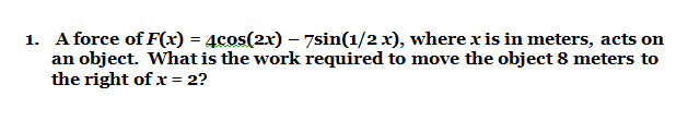Determine the work required to move the object from the right of meters to  meters.