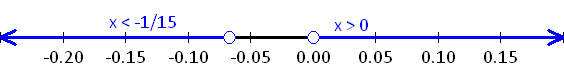The statement is true for x  = -0.1 and = 0.05.Therefore the solution is  x  < -1/15 and x  >0.