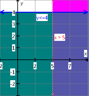 The solution of system is the set of orderd pairs in the intersection of the graph of x > 5 and y ≤ 4