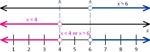 The solution set is {x | x < 4 or x > 6}.