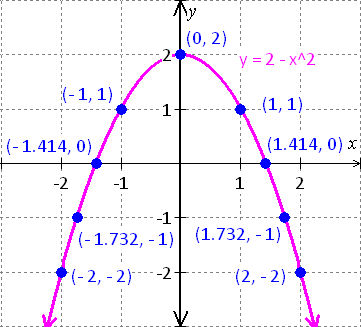 Solution to find the value of (x) in the (y = 2 - x²)?